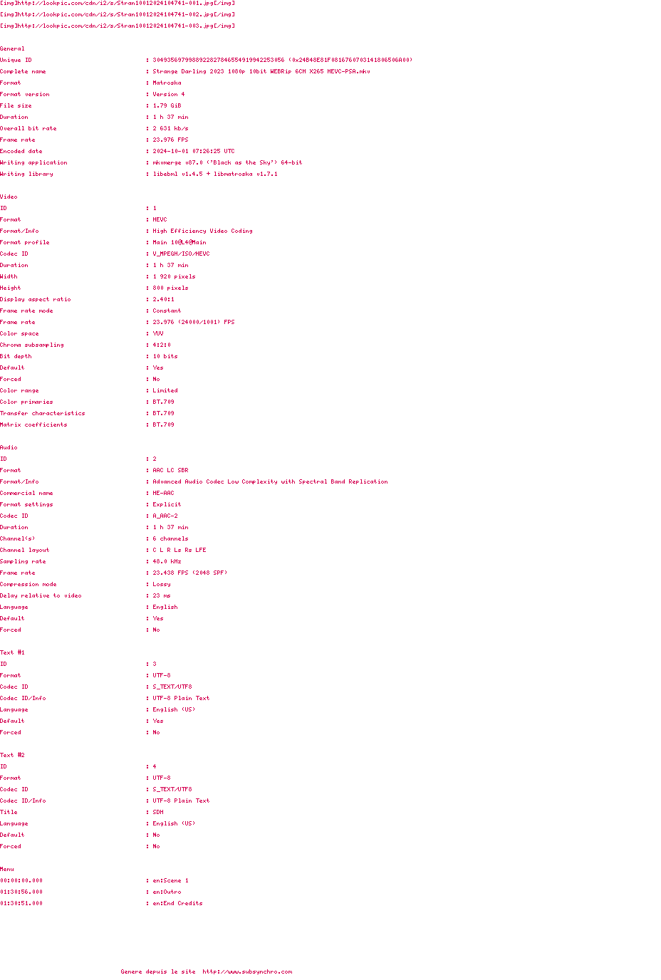 Voir le nfo de la release Strange.Darling.2023.1080p.BluRay.DD.5.1.x264-MegaPeer