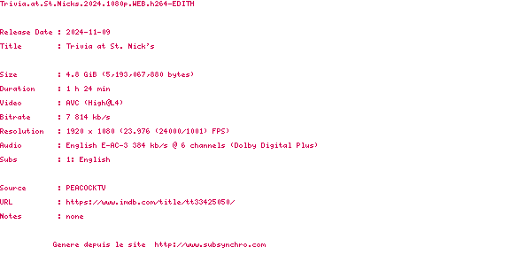 Voir le nfo de la release Trivia.At.St.Nicks.2024.1080p.WEB.H264-EDITH