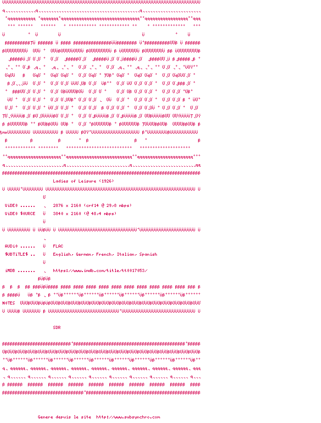 Voir le nfo de la release The.Scarlet.Lady.1928.2160p.UHD.BluRay.x265-SURCODE