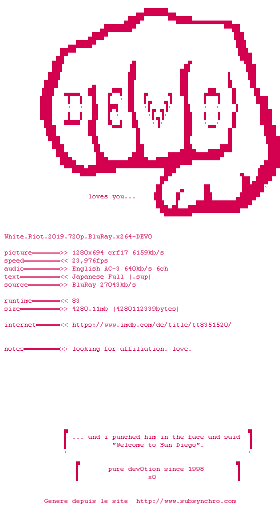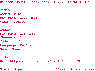 Voir le nfo de la release White.Riot.2019.720p.BluRay.x264-DEV0