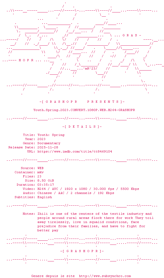 Voir le nfo de la release Good.Fortune.2025.2160p.UHD.BluRay.x265-B0MBARDiERS