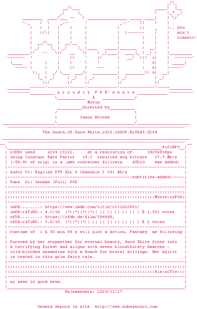Voir le nfo de la release The.Death.Of.Snow.White.2025.1080P.BLURAY.x264-WATCHABLE