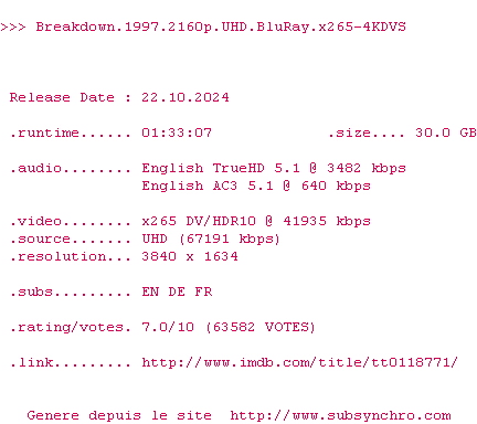 Voir le nfo de la release Breakdown.1997.2160p.UHD.BluRay.x265-4KDVS