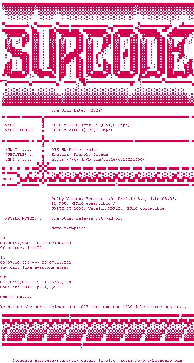 Voir le nfo de la release Deadpool.And.Wolverine.2024.2160p.UHD.BluRay.x265-B0MBARDiERS