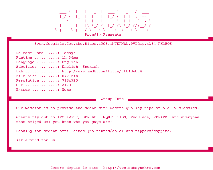 Sous-titres de films synchronises par release