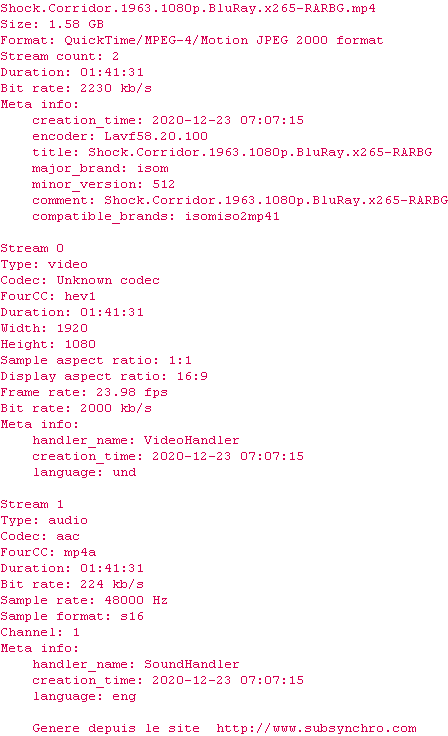 Voir le nfo de la release Shock.Corridor.1963.1080p.BluRay.x265-RARBG