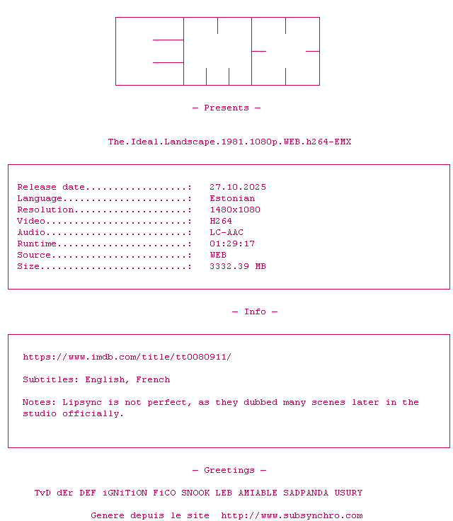 Voir le nfo de la release Romuald.Et.Juliette.1989.FRENCH.1080p.WEB.x264-UKDHD