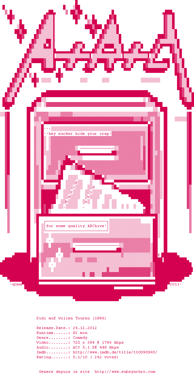 Voir le nfo de la release Didi.Auf.Vollen.Touren.German.1986.AC3.BDRip.XviD.iNTERNAL-ARC