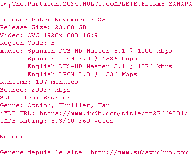 Voir le nfo de la release The.Partisan.2024.MULTi.COMPLETE.BLURAY-ZAHARA