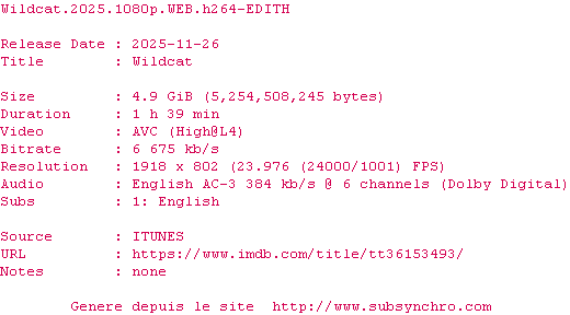 Voir le nfo de la release Wildcat.2025.2160p.WEB.H265-EDITH