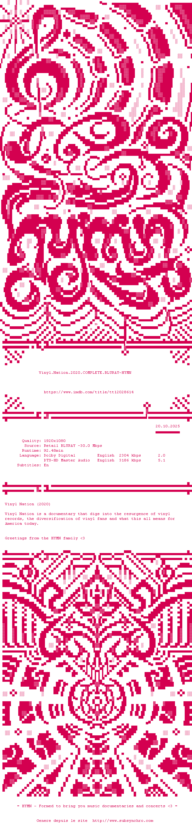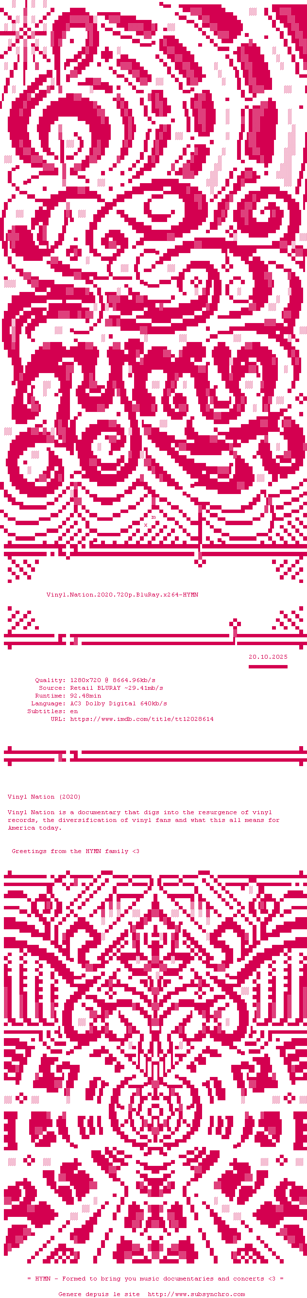 Voir le nfo de la release Vinyl.Nation.2020.720p.BluRay.x264-HYMN