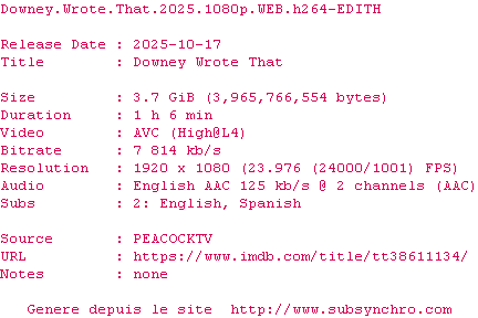Voir le nfo de la release Downey.Wrote.That.2025.1080p.WEB.H264-EDITH