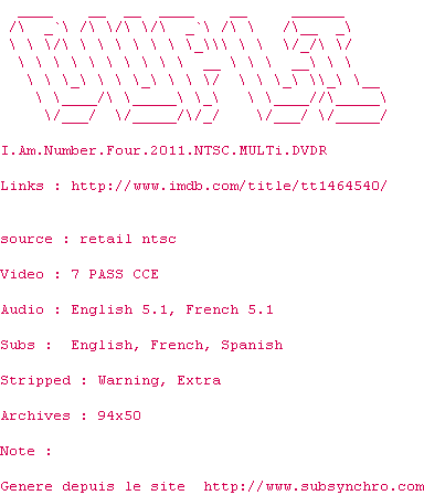 Voir le nfo de la release Four.2011.1080p.BluRay.x264-RRH