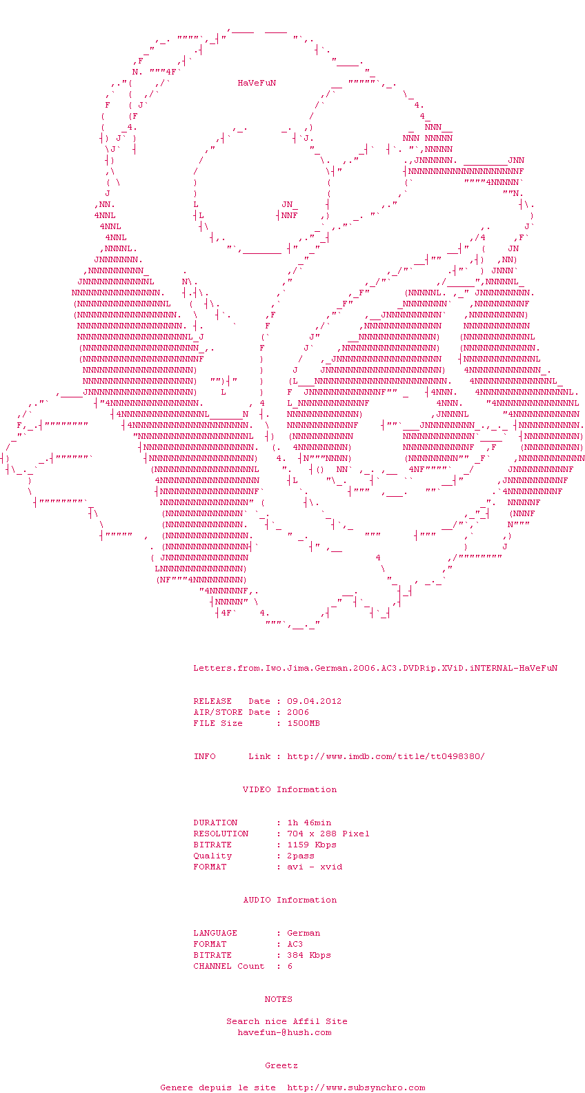 Voir le nfo de la release Letters.From.Iwo.Jima.REAL.DVDSCR.XviD-iMBT