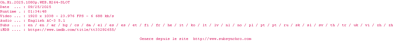 Voir le nfo de la release Oh.Hi.2025.1080p.WEB.H264-SLOT