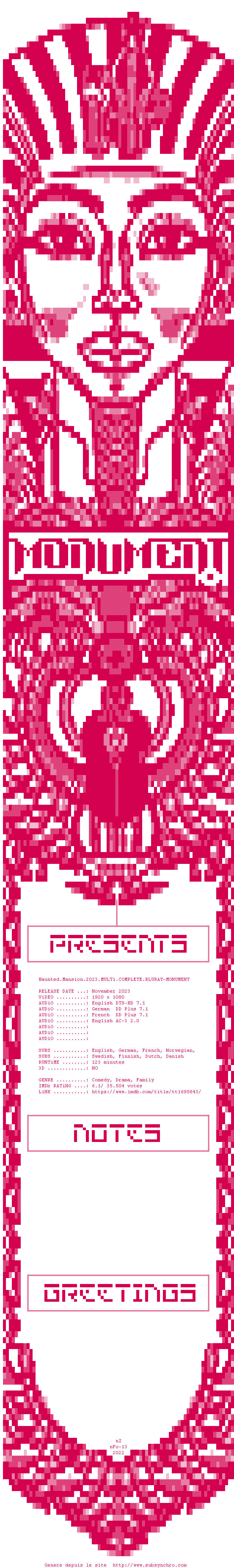 Voir le nfo de la release Haunted.Mansion.2023.MULTi.COMPLETE.BLURAY-MONUMENT
