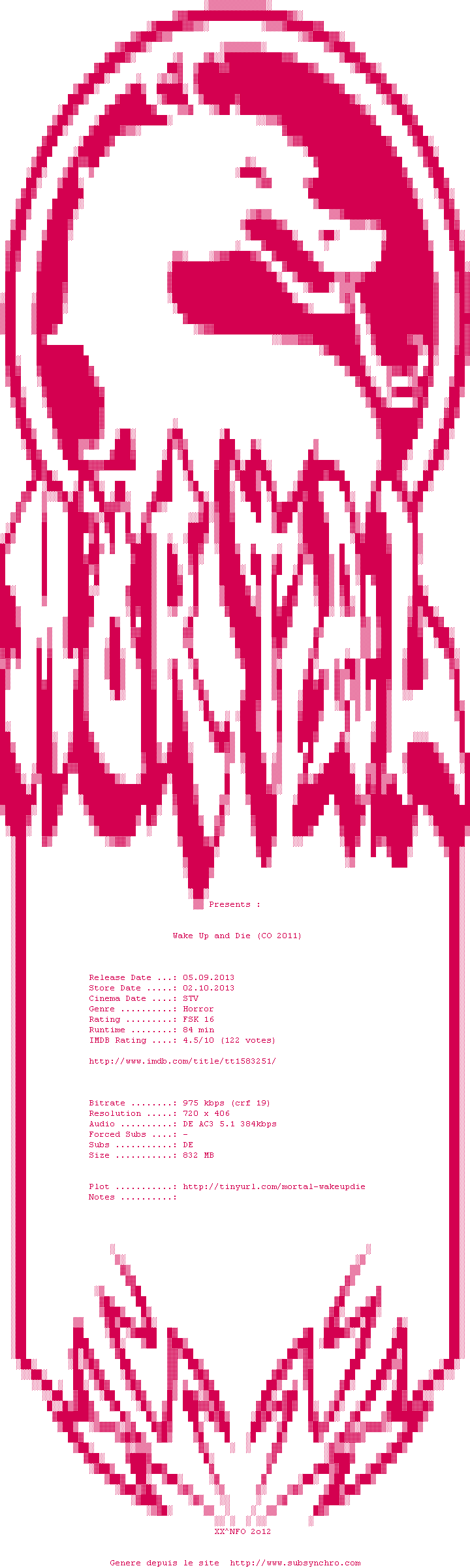 Voir le nfo de la release Wake.Up.And.Die.German.Uncut.2011.BDRip.x264-MORTAL