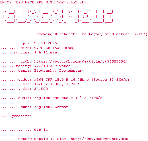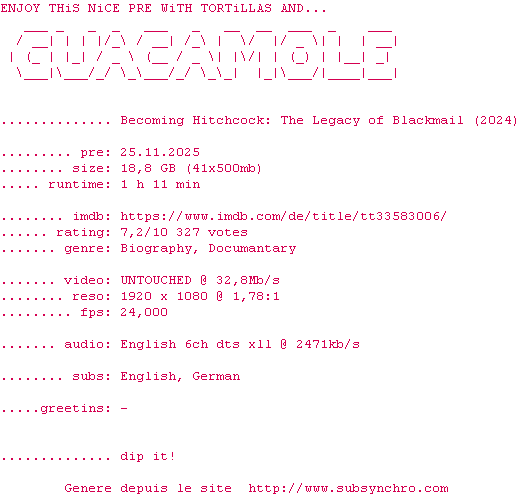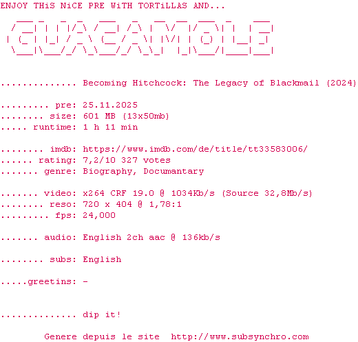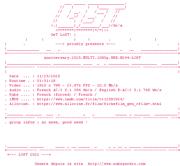 Voir le nfo de la release Anniversary.2025.MULTI.1080p.WEB.H264-LOST