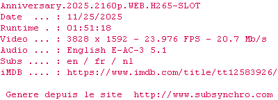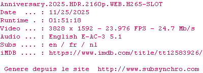 Voir le nfo de la release Anniversary.2025.2160p.WEB.H265-SLOT