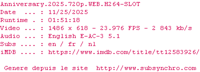Voir le nfo de la release Anniversary.2025.720p.WEB.H264-SLOT