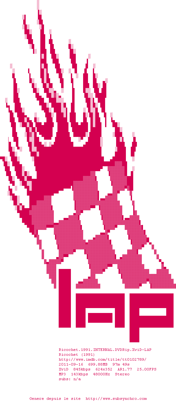 Voir le nfo de la release Ricochet.1991.iNTERNAL.DVDRip.XviD-LAP