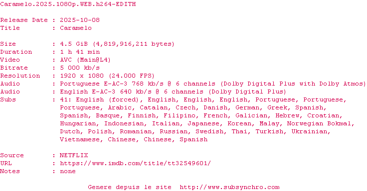 Voir le nfo de la release Caramelo.2025.1080p.WEB.H264-EDITH