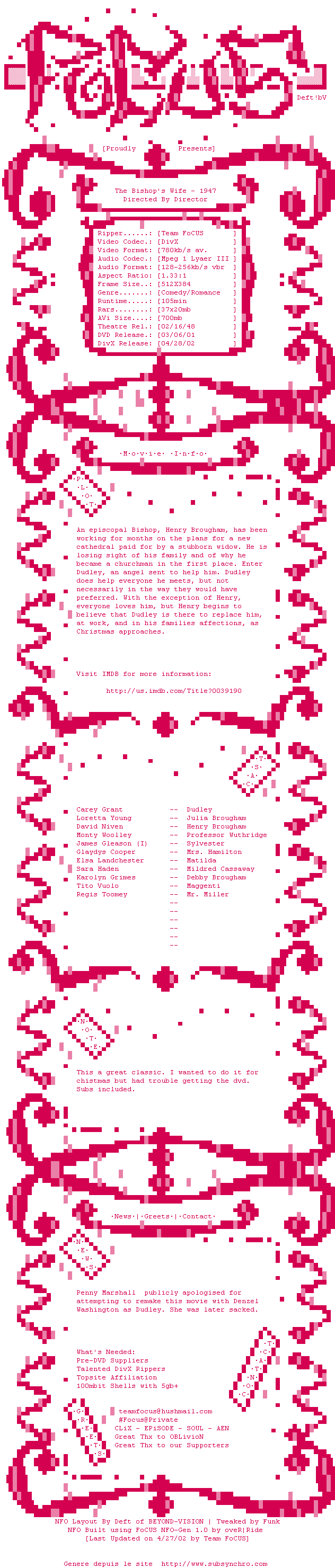 Voir le nfo de la release The.Bishops.Wife.1947.DVDivX-FoCUS