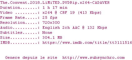 Voir le nfo de la release The.Convent.2018.LiMiTED.DVDRip.x264-CADAVER