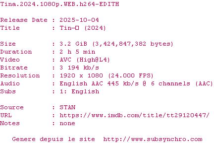 Voir le nfo de la release Tina.2024.1080p.WEB.H264-EDITH