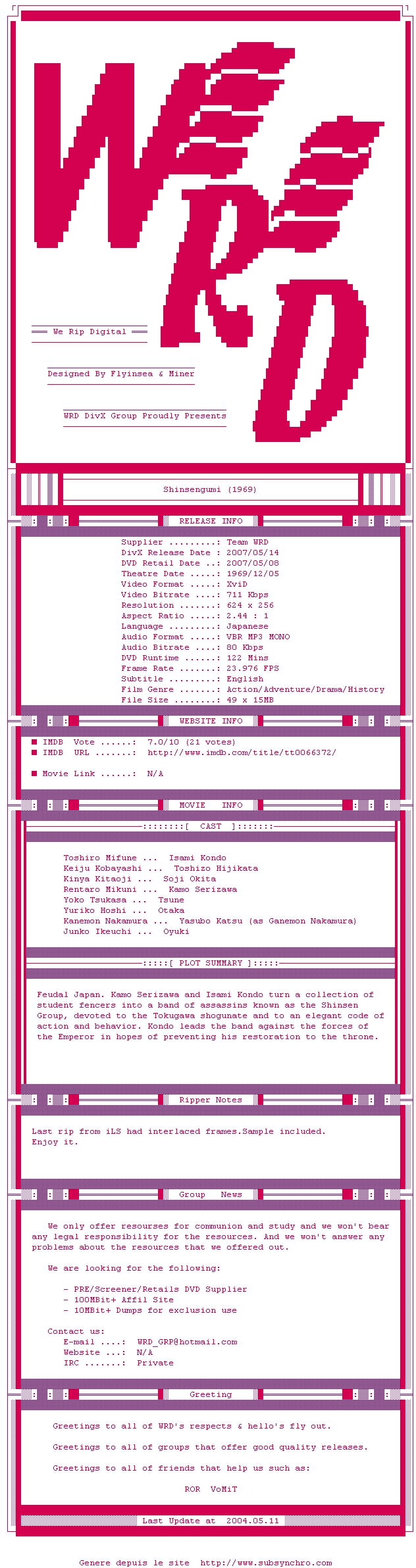 Voir le nfo de la release Kuchu.Teien.2005.PROPER.DVDRip.XviD-WRD