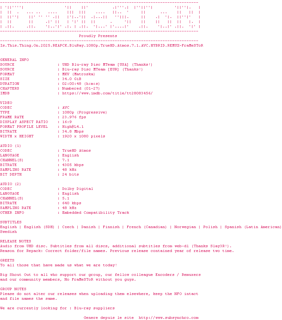 Voir le nfo de la release Superman.2025.REPACK.1080p.BluRay.x264-KNiVES